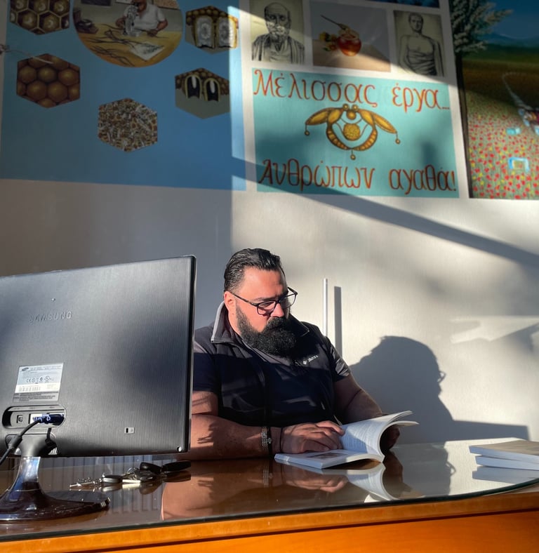 Petros Kambouris, owner of Melito, belongs to a long tradition of beekeeping as a 4th generation professional. A graduate of higher education specializing in agronomy, he incorporates his knowledge into the art of beekeeping. His dedication began in 2000, and since then, he has been distinguished for his continuous pursuit of high quality and innovation in honey production. With a passion for science and nature, Petros Kambouris succeeds in combining tradition with modern beekeeping, creating products with taste and value that stand out.